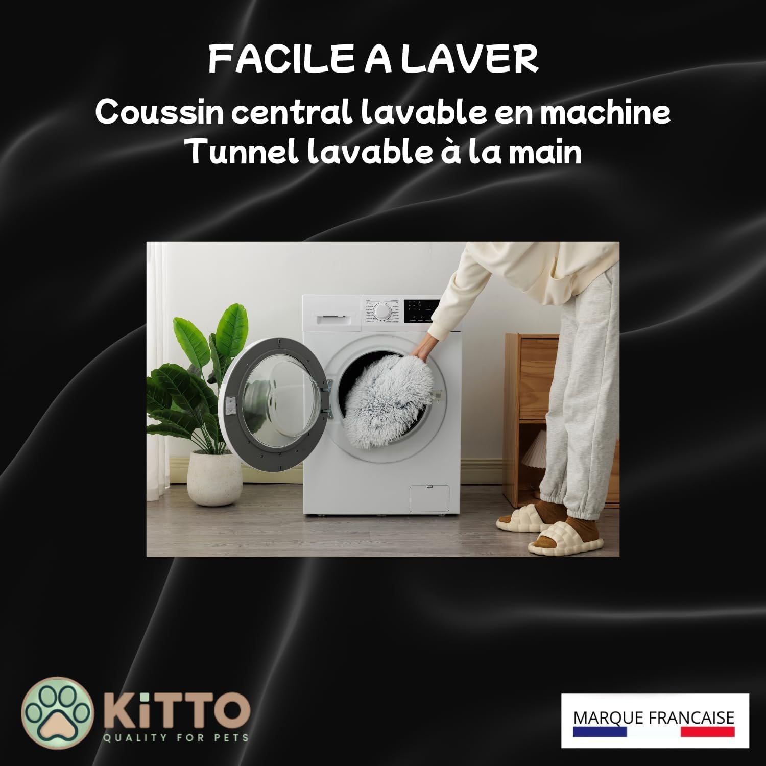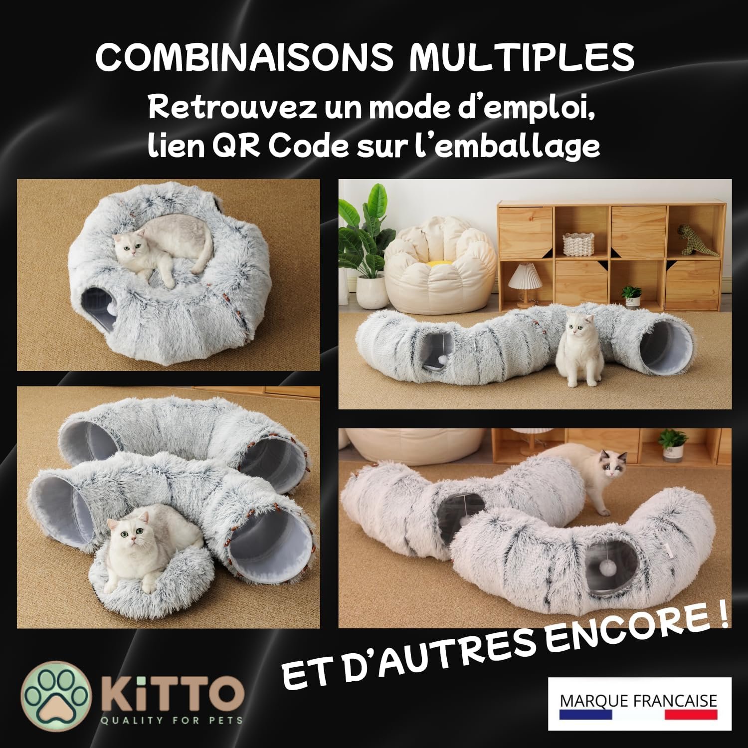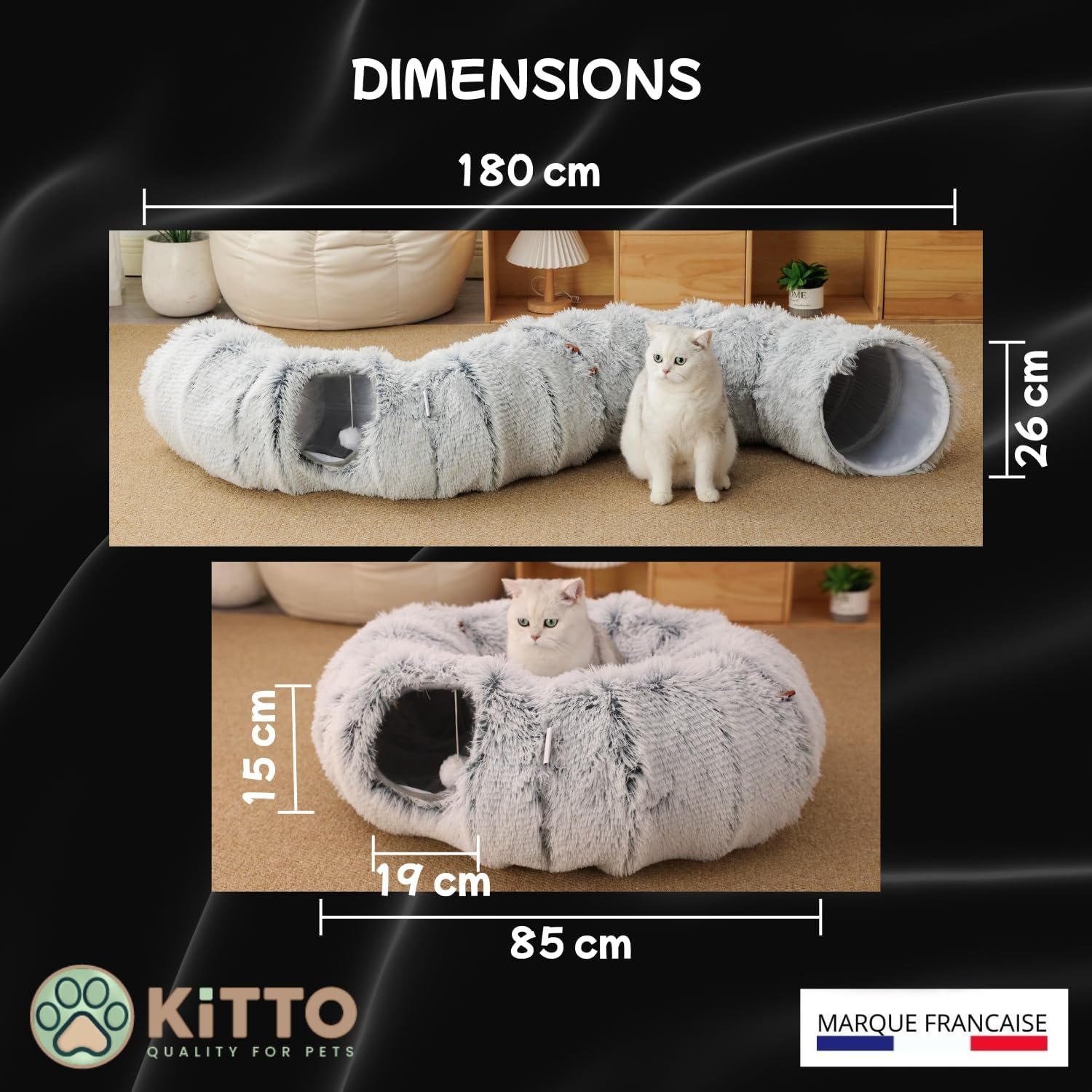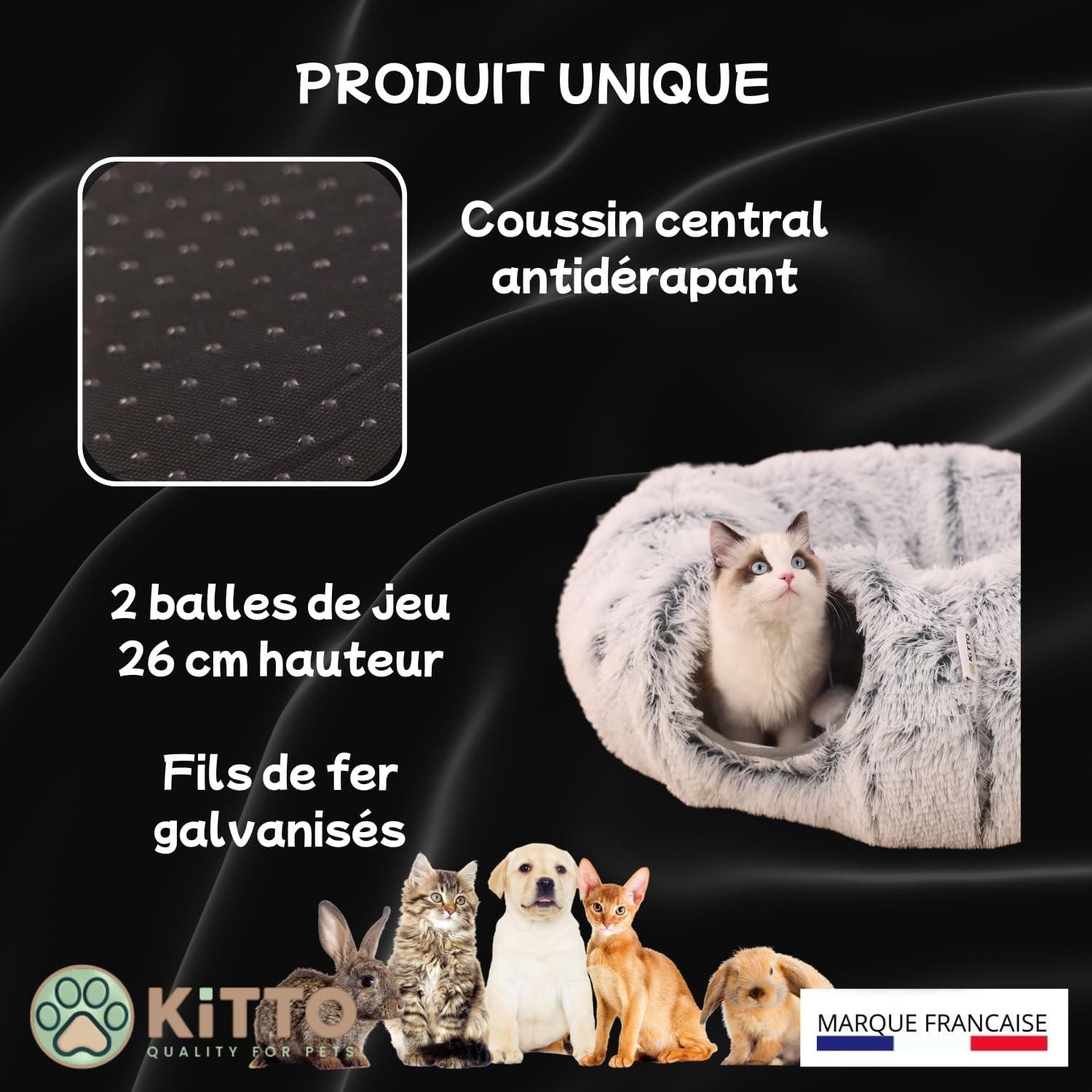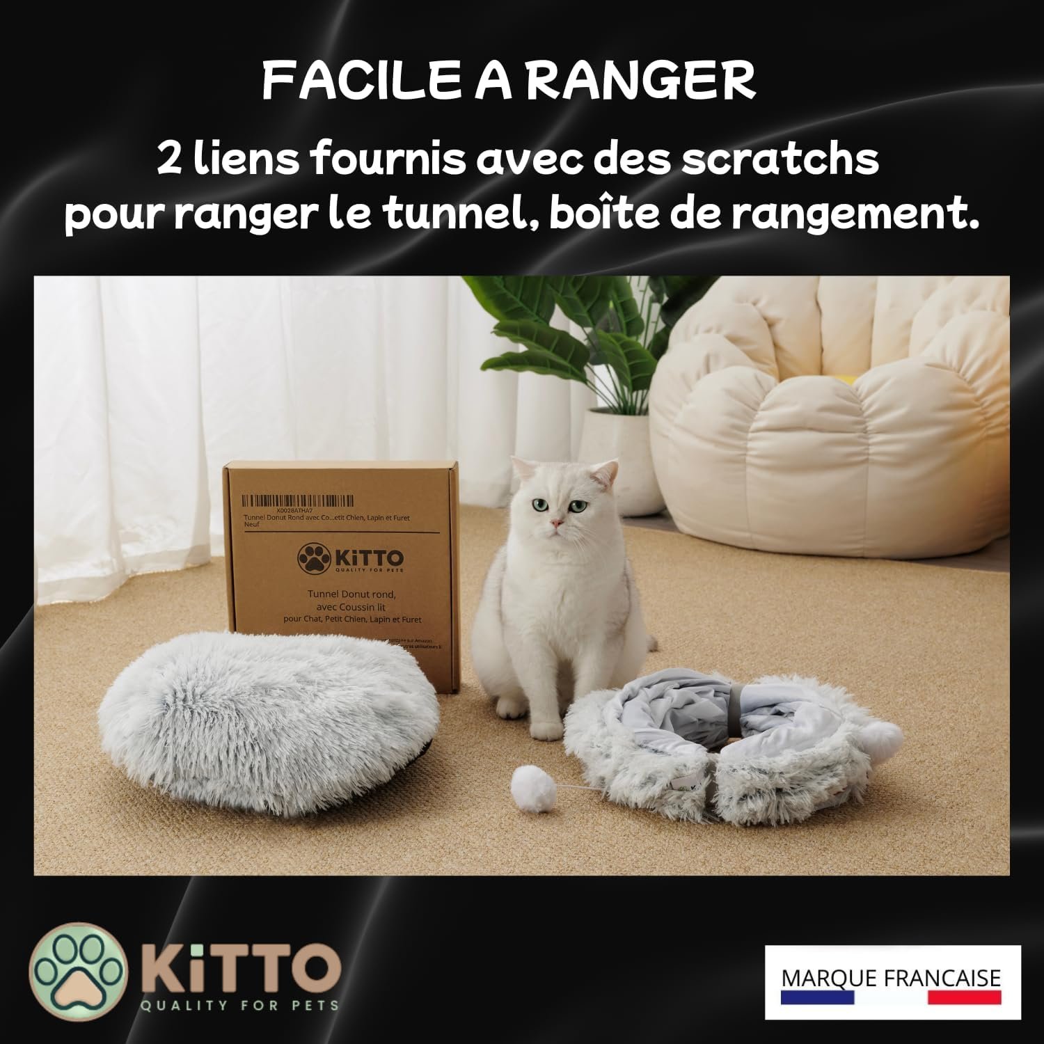 Offrez à votre compagnon félin un espace de détente et de jeu unique avec le Kitto Tunnel Chat. Ce tunnel modulable se transforme facilement en panier moelleux et inclut un coussin douillet pour un confort optimal. Conçu pour les chats XXL, petits chiens ou même furets, il dispose d’un diamètre généreux et d’entrées larges pour un accès facile. Fabriqué en matériaux ultra-doux et durable, il s’intègre harmonieusement dans votre intérieur. Commandez dès maintenant et transformez le coin repos de votre animal en véritable havre de paix.