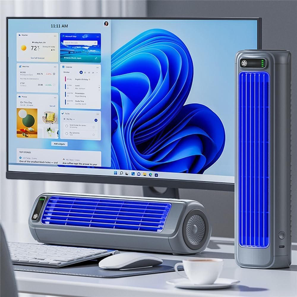 Shirem Rafraichisseur d’Air Silencieux, Mini Climatiseur Mobile, Portable Refroidisseur d’Air 3 Vitesses, USB Rechargeable, pour Chambre, Bureau, Maison