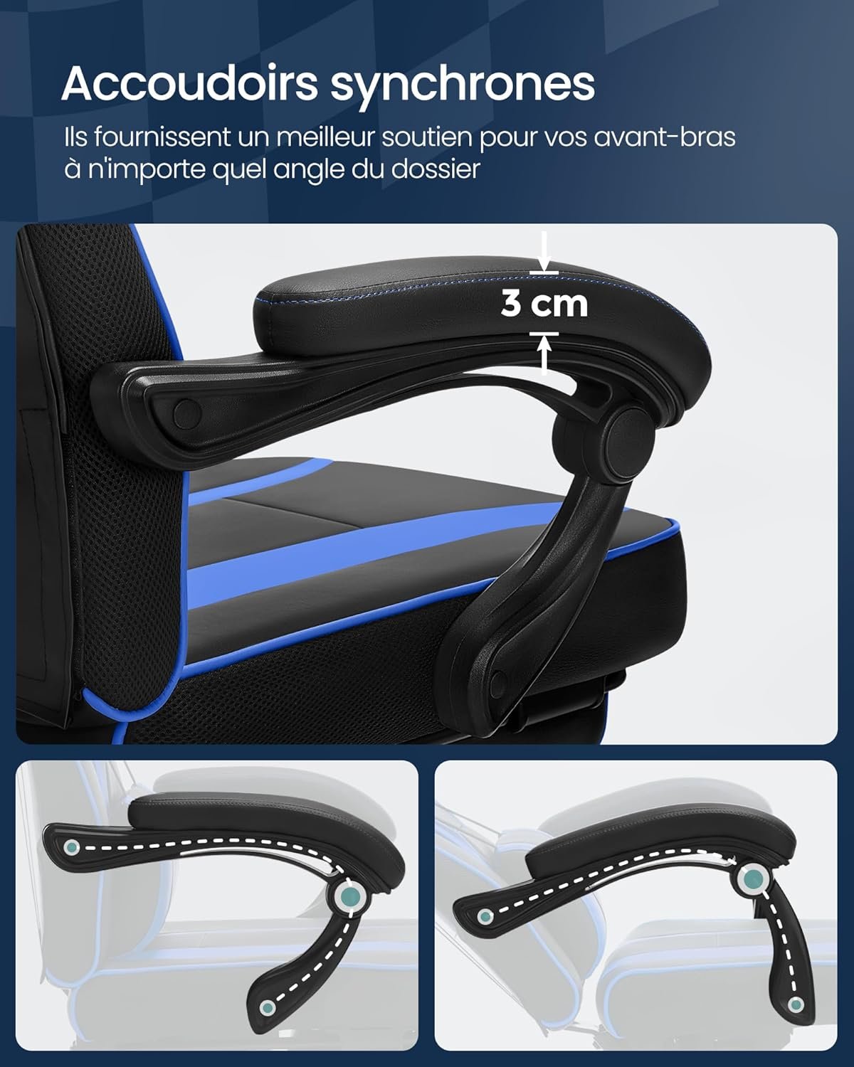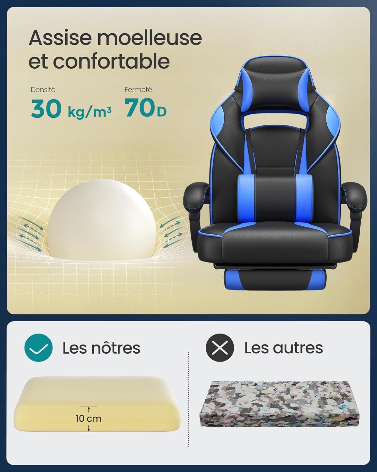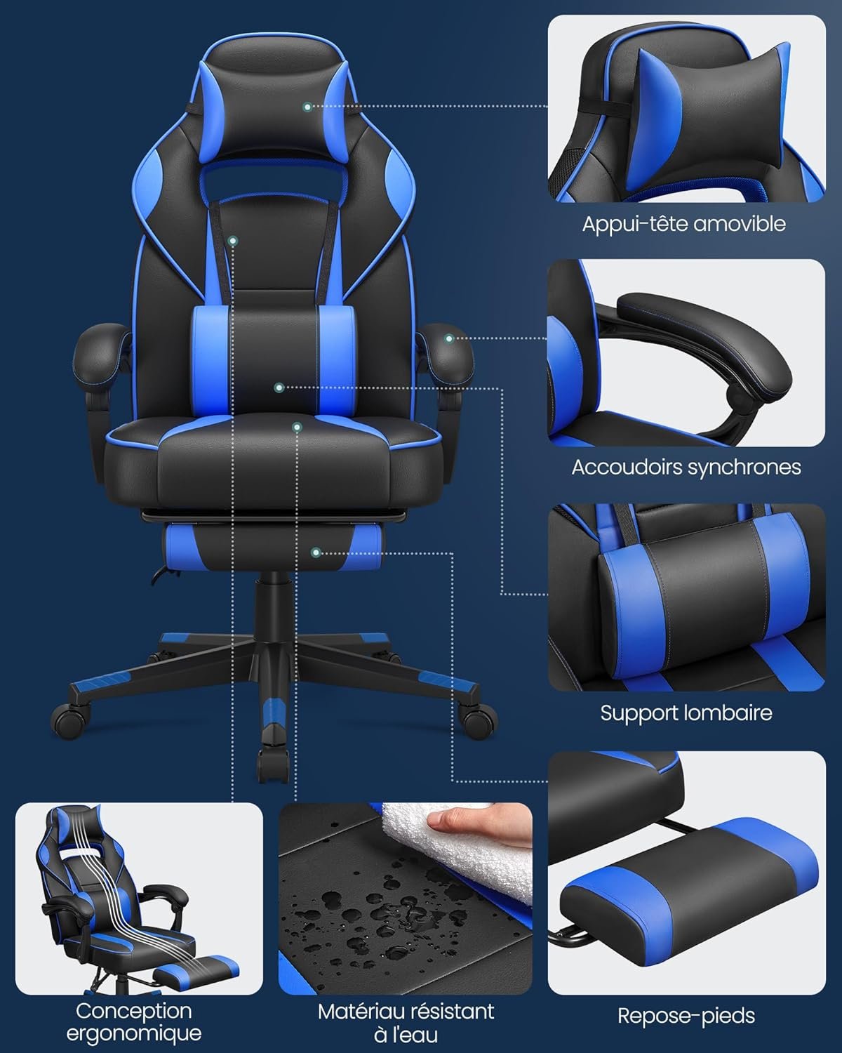 Offrant un confort supérieur et un design ergonomique, le fauteuil de bureau SONGMICS OBG073B04 combine style et fonctionnalité. Son repose-pieds télescopique, son dossier inclinable jusqu’à 135° et son rembourrage épais assurent un soutien parfait pour le travail ou la détente. Conçu avec des matériaux robustes et faciles à entretenir, il s’adapte à tous les environnements de travail. 💺 Améliorez votre confort dès aujourd’hui avec SONGMICS !