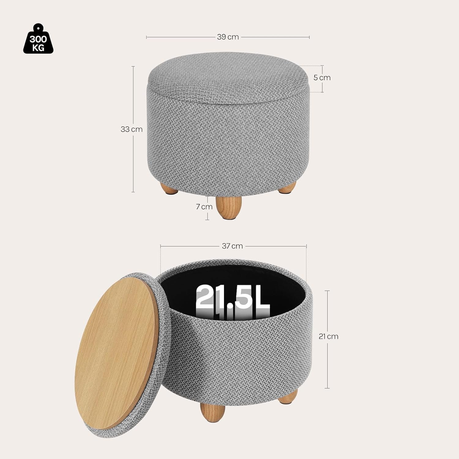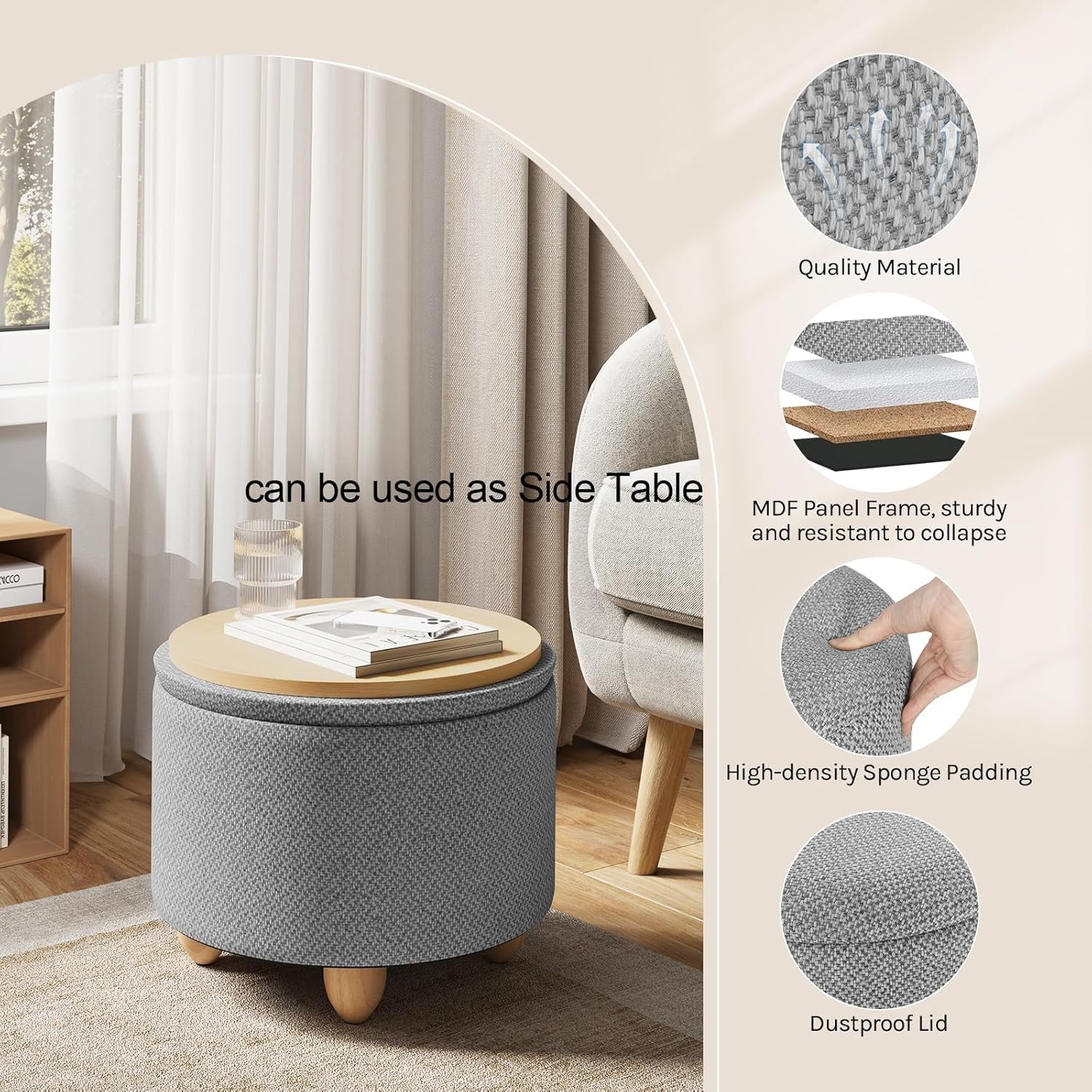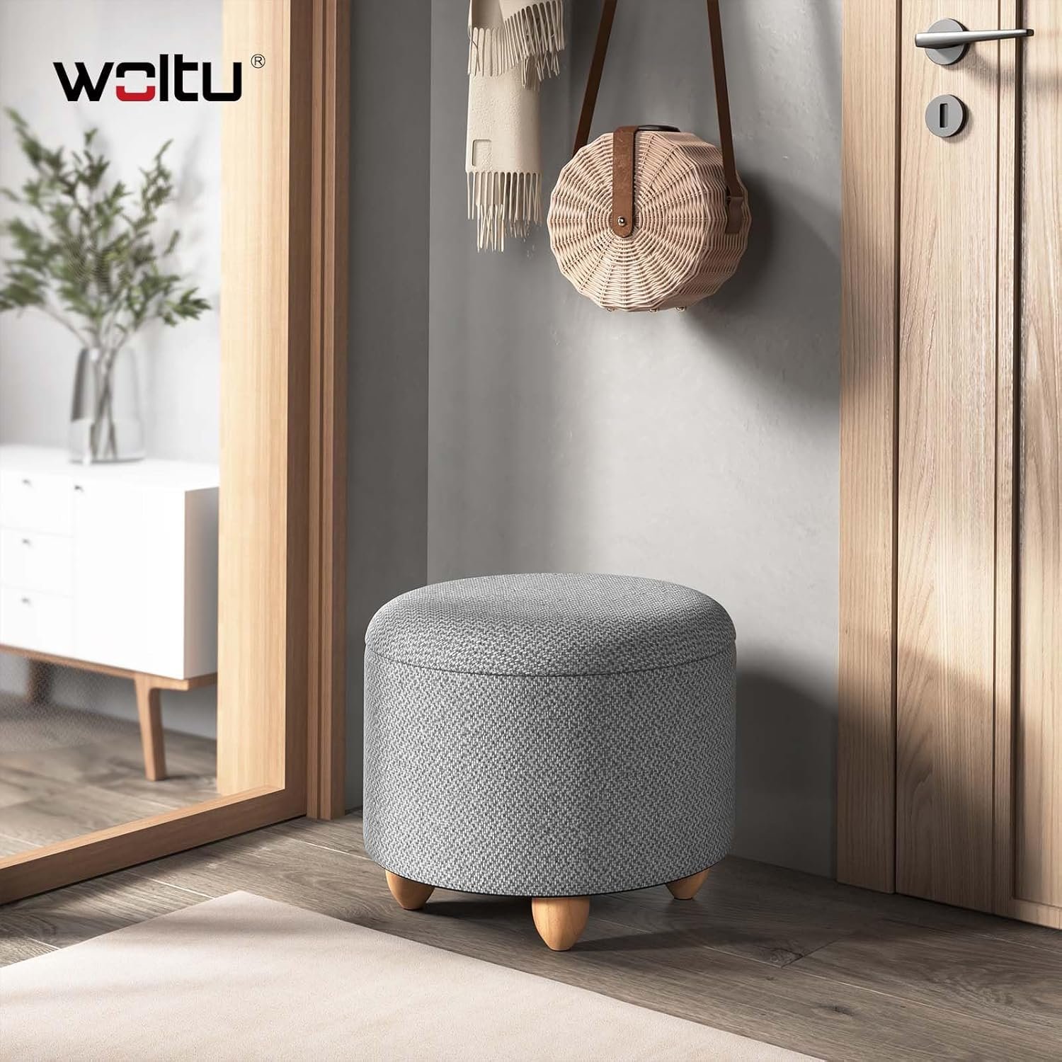 WOLTU Pouf de Rangement, Tabouret Rembourré avec Couvercle, Pouf Ottoman avec Pieds en Pin, Gain de Place