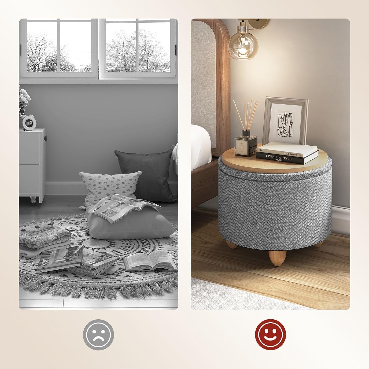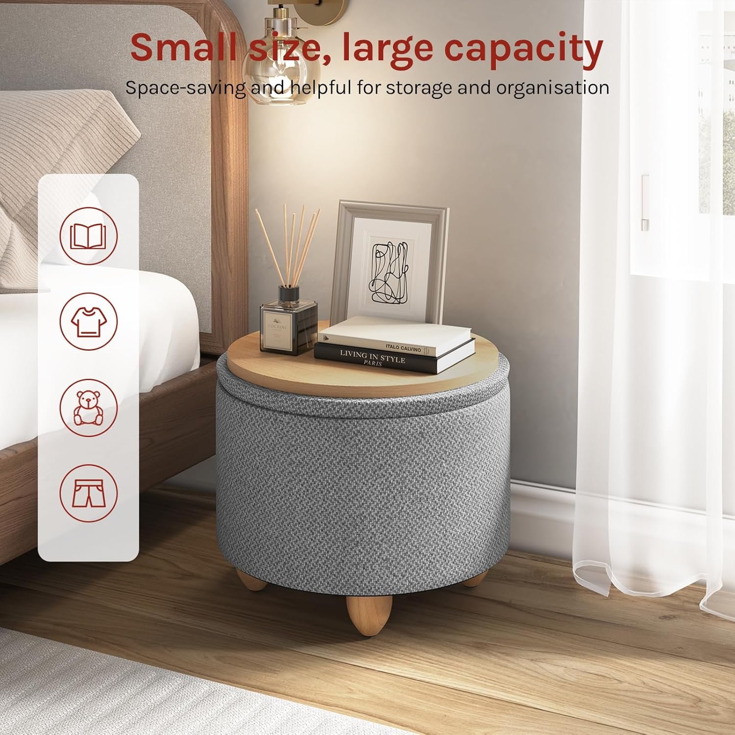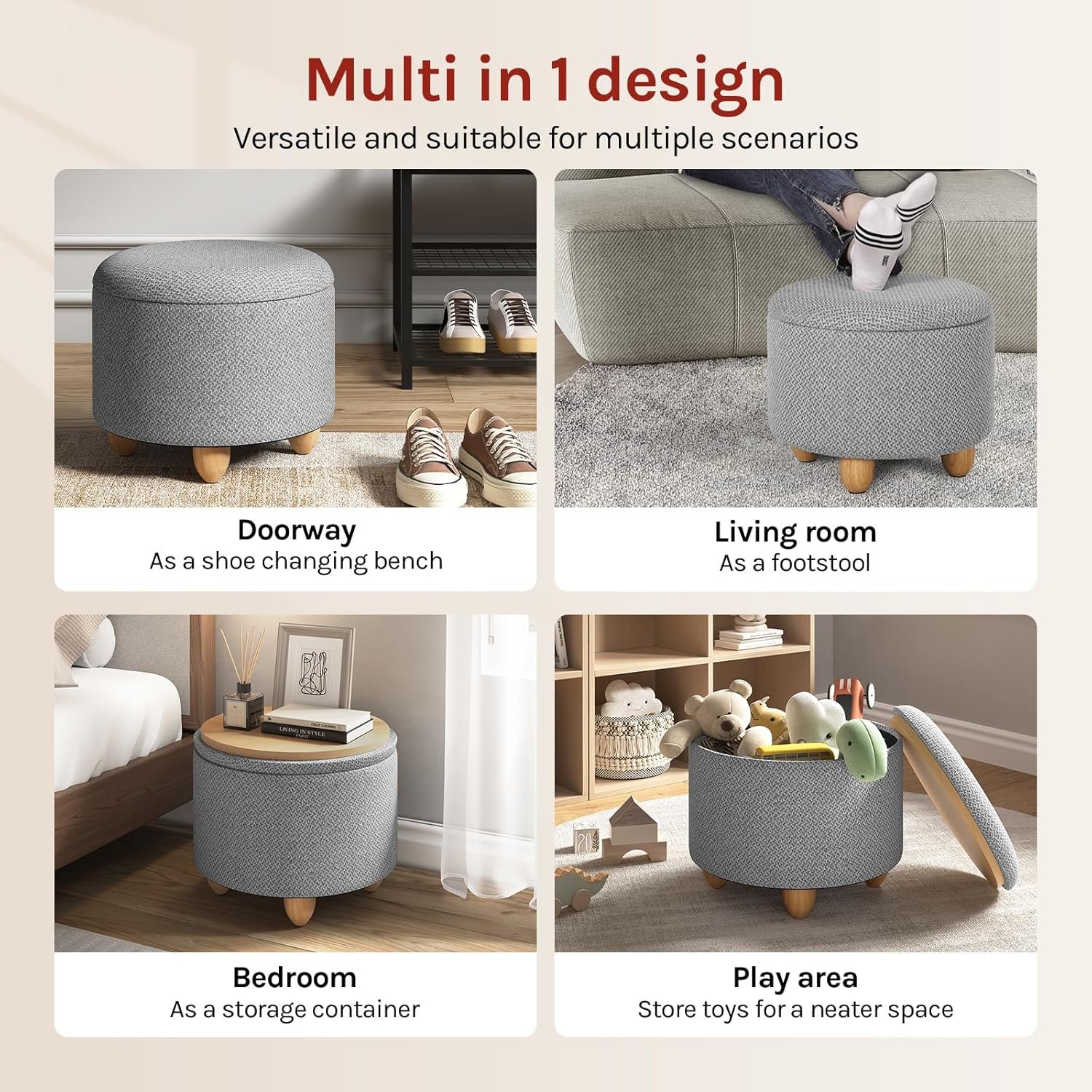 WOLTU Pouf de Rangement, Tabouret Rembourré avec Couvercle, Pouf Ottoman avec Pieds en Pin, Gain de Place